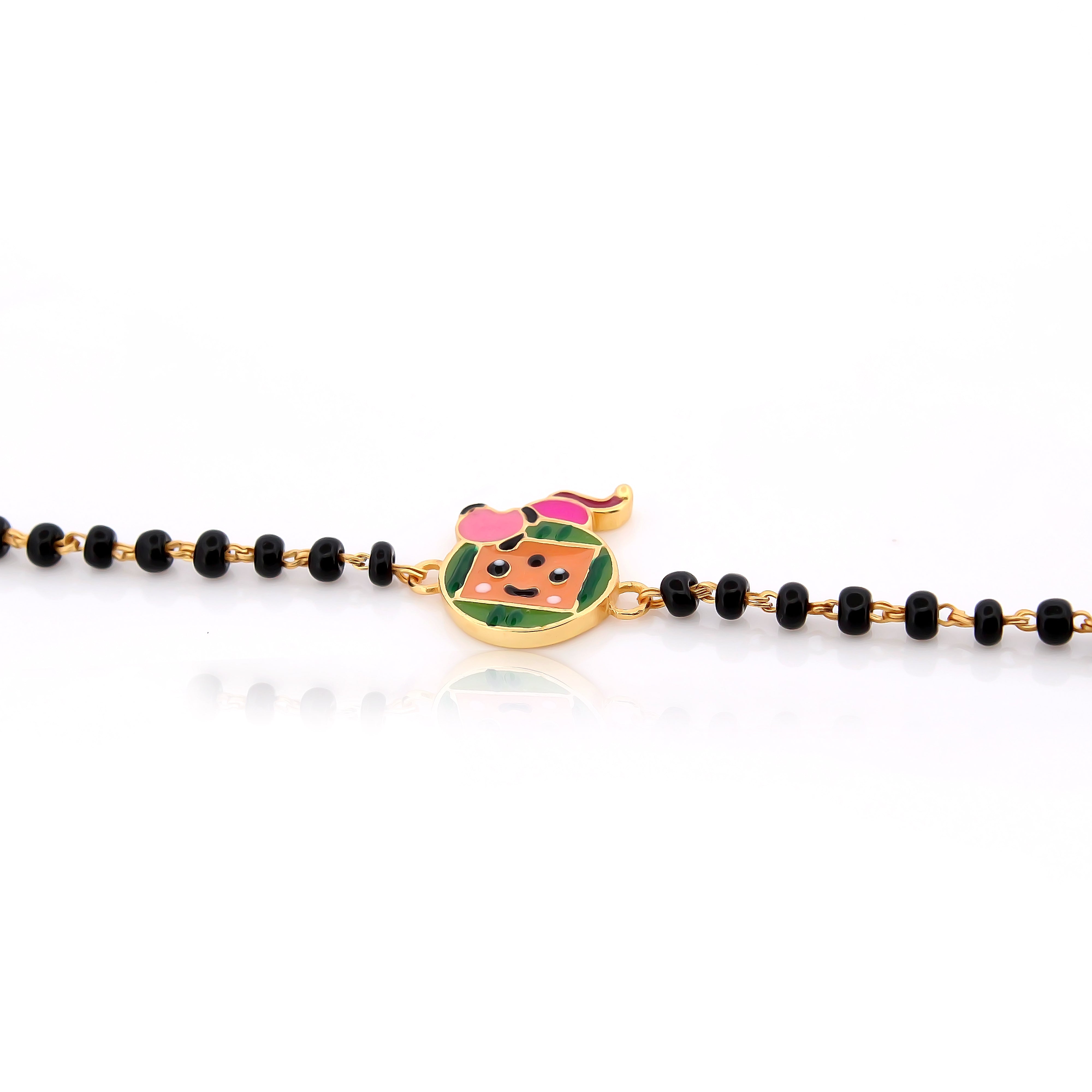 Add a touch of fun, charm, and protection to your baby’s look with the Happy Watermelon & Apple Nazariya Bracelet. Crafted from 925 Sterling Silver with 18KT Gold Plating, this adorable bracelet features playful fruit charms alongside traditional Nazariya beads, believed to ward off negativity and bring good fortune. The bright and cheerful design makes it a perfect accessory for little ones while ensuring comfort and safety.