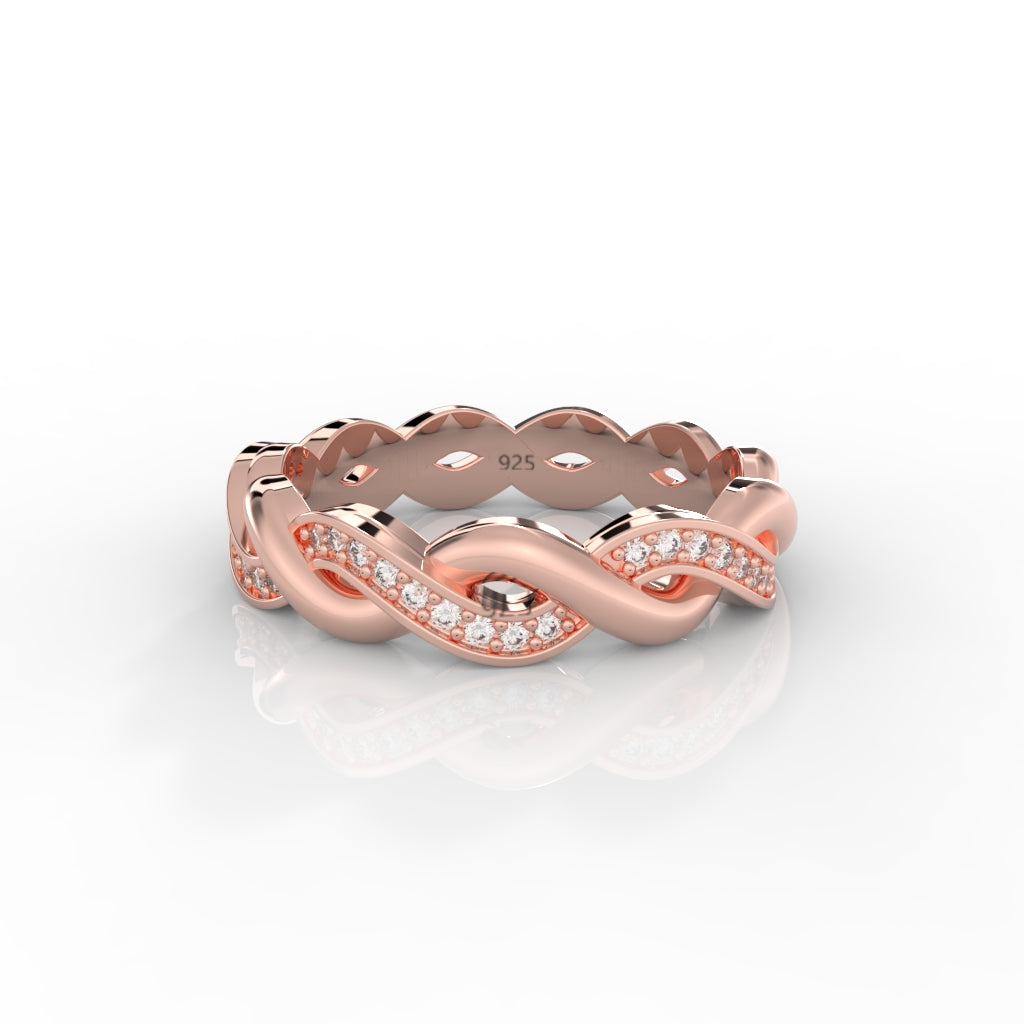 This exquisite twisted rope band ring is crafted from high-quality sterling silver 925, offering a unique blend of elegance and texture. Adorned with sparkling cubic zirconia detailing, it captures light beautifully, making it a stunning statement piece. Designed especially for women, this ring adds a touch of sophistication to any outfit, perfect for both everyday wear and special occasions.